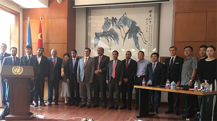 On September 8, 2017, HEI Chairman Guo Yu attended the press conference and the launching ceremony of WGEO Financing Platform held in the United Nations Development Programme (UNDP) in Beijing at the invitation of the World Green Economy Organization (WGEO). There he also met with the WGEO Chairman Mr. Al Tayer.