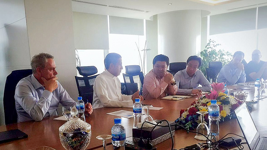 2016年9月14日,乐天堂fun88集团董事长郭宇在迪拜拜会了哈翔项目投资方兼项目业主沙特ACWA公司董事会主席M.Abunayyan,以及GE能源系统CEO A.Lusch,并就推进哈翔项目有关事宜举行了会谈。