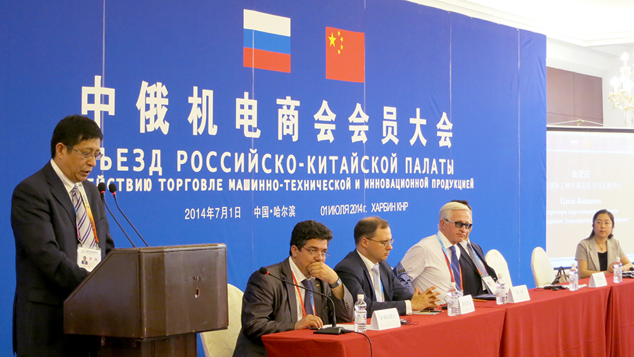 2014年7月1日,由中国机电产品进出口商会组织的中俄机电商会会议暨两国大企业合作圆桌会议在哈尔滨华旗饭店召开。黑龙江省政府副省长孙尧,中国机电产品进出口商会会长张钰晶,俄罗斯工业家企业家联盟、俄罗斯远东发展部部长以及中俄双方多家企业领导参会。公司党委书记、副董事长曲爱民,市场总监、经营开发事业部总经理葛新代表公司应邀参加会议。