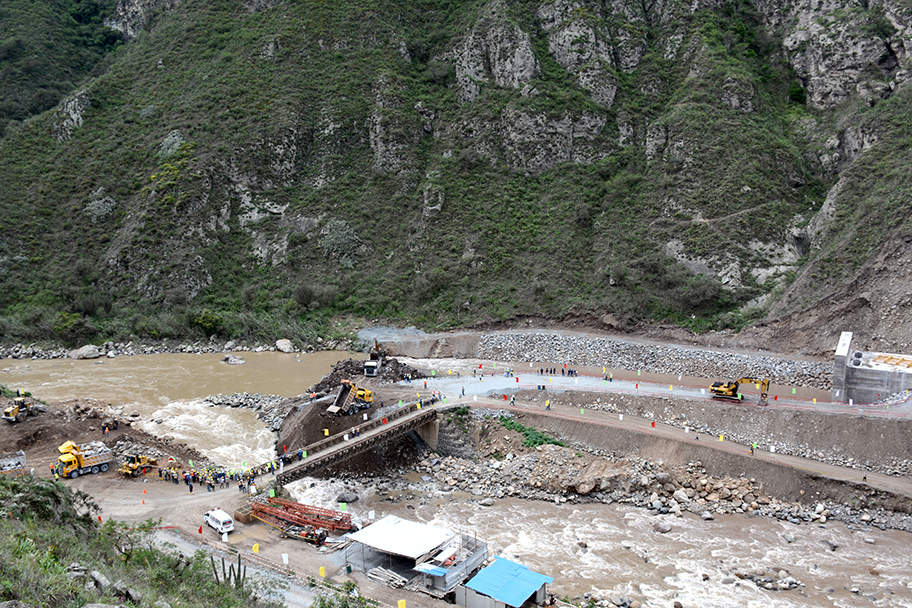 当地时间2014年2月27日10时30分,乐天堂fun88集团公司承建的厄瓜多尔美纳斯水电站现场,随着一阵巨大的轰鸣,十几辆重型自卸车、推土机在仅剩下5米多宽龙口的胡沃内斯河开始截流。经过几轮抛填,数千吨巨石、石笼不断填入龙口,迅速成为一道阻隔河水的堤坝。17时20分,顺利完成截流工作。胡沃内斯河顺利截流标志着厄瓜多尔美纳斯水电站坝区施工准备工程全面结束,胜利转入主体工程施工阶段。