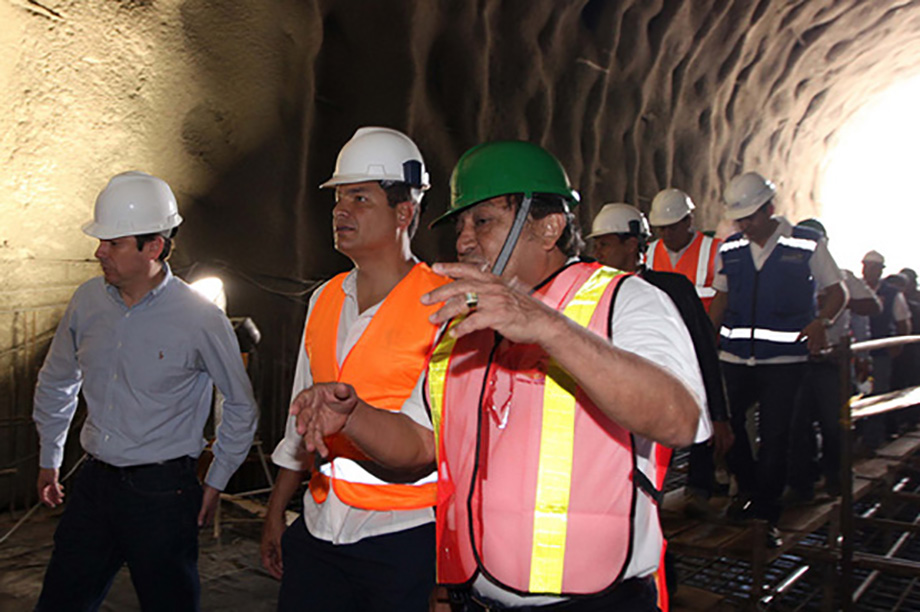 10时53分,科雷亚总统一行抵达美纳斯项目现场,视察了导流洞、进场交通洞施工情况,最后抵达美纳斯项目中方营地,与当地居民和工人代表共进午餐。