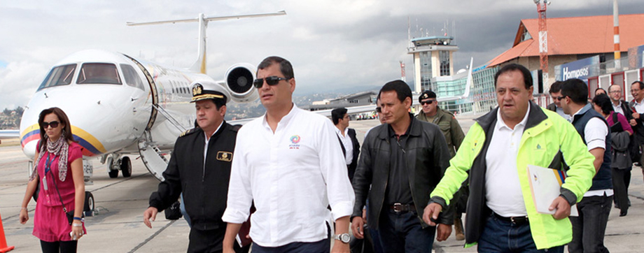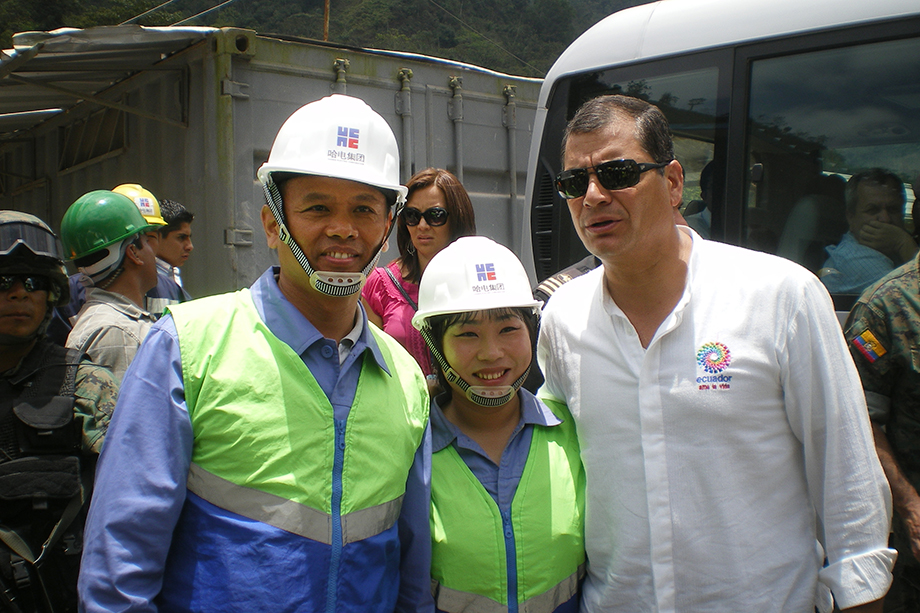 厄瓜多尔当地时间2013年9月26日,厄瓜多尔总统科雷亚·拉斐尔先生(Rafael Correa)一行到美纳斯项目现场视察。厄瓜多尔战略协调部部长、电力部部长、EL ORO省省长、Azuay省省长等政府官员以及CELEC EP总经理和业主湖邦公司总经理等陪同视察。乐天堂fun88集团公司副总经理杨庆利、新能源事业部副总经理张涌、资深合同经理梁广清等参加了视察活动。