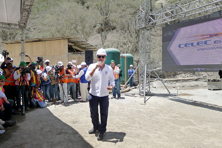 视察期间,科雷亚总统表示,美纳斯项目是厄瓜多尔国家水电大发展计划中的关键项目之一,很高兴看到美纳斯项目顺利执行,政府目前正在通过八个在建水电项目改变国家的能源格局,希望用清洁能源减少二氧化碳排放量,让国家免受环境污染。科雷亚总统还介绍美纳斯项目是由中国政府提供的贷款,并且是由中国公司为厄瓜多尔人民兴建的水电项目,此举对两国友好发展具有重大意义。科雷亚总统还表示,美纳斯项目的建设同时也带动了周边地区经济的飞速发展,包括加速增长的物品销售量、提供大量的工作岗位、兴建社区的道路和自来水供应等基础设施。最后,科雷亚总统向人民保证:美纳斯项目建设的最大收益者将会是人民,希望厄国公民共同投身到清洁能源项目的建设中,为厄瓜多尔的国家发展贡献力量。