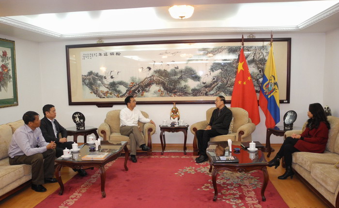 2013年4月30日,乐天堂fun88集团集团总经理邹磊、哈尔滨锅炉厂董事长王德兴、乐天堂fun88集团副总经理杨庆利、乐天堂fun88集团厄瓜多尔分公司负责人于猛一行拜访了中国驻厄瓜多尔新任大使王士雄大使以及经商参处商务参赞彭涛参赞。