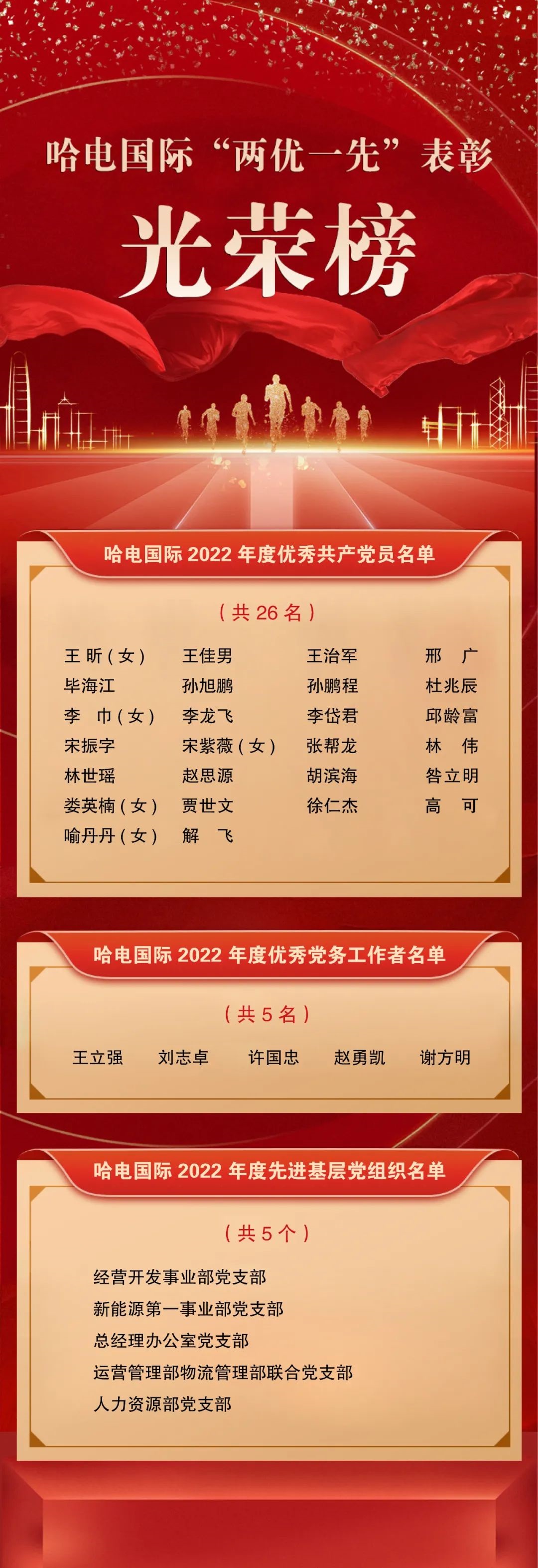 7月6日,乐天堂fun88集团党委召开2022年度党内“两优一先”表彰座谈会暨基层党建提升专项行动部署动员会,表彰乐天堂fun88集团2022年度优秀共产党员、优秀党务工作者、先进基层党组织,部署安排基层党建提升专项行动相关工作。乐天堂fun88集团党委副书记、总经理李超出席会议并讲话,党委副书记朱宏光主持会议,党委委员、总会计师韩莉莉宣读表彰决定,乐天堂fun88集团副总经理李默、纪委书记任克奇出席会议。 乐天堂fun88集团2022年度优秀共产党员 乐天堂fun88集团2022年度优秀党务工作者 乐天堂fun88集团2022年度先进基层党组织 李超指出,在全党深入开展学习贯彻习近平新时代中国特色社会主义思想主题教育,奋进中国式现代化新征程的重要时刻,乐天堂fun88集团党委表彰2022年度“两优一先”,目的就是深入学习贯彻党的二十大精神,大力弘扬伟大建党精神,发扬“许党报国、改革创新、精益求精、勇攀高峰、无私奉献”的乐天堂fun88集团精神,着力营造“学习先进、崇尚先进、争当先进”的良好氛围。开展基层党建提升专项行动,目的就是坚持大抓基层的鲜明导向,进一步激励和动员各基层党组织和广大党员,充分发挥党组织的战斗堡垒作用和党员的先锋模范作用,在推进公司高质量发展和党的建设中再立新功。 李超强调,一是要发挥榜样力量,树立“比学赶超”的良好氛围。受到表彰的先进集体和优秀个人,是乐天堂fun88集团基层党组织广大党员的优秀代表,更是大家学习的榜样。各基层党组织和广大党员要积极向他们看齐,“比”担当、“学”本领、“赶”先进、“超”一流,营造“比学赶超”的良好氛围。二是要扎实开展党建提升行动,切实提高基层党建水平。各基层党组织要高度重视,扎扎实实地把基层党建提升专项行动攻关立项工作组织好,深入探索新时代党建治理新模式,通过优化组织设置、优化队伍培育、提升载体建设、提升治理效能、打造党建品牌示范矩阵,充分发挥基层党组织作用。三是要持续深入推进主题教育,以党建引领下半年工作。深入开展学习贯彻习近平新时代中国特色社会主义思想主题教育,是当前和今后一个时期的重大政治任务,是贯彻落实党的二十大精神的重大举措,乐天堂fun88集团各级党组织和广大党员干部要按照公司主题教育工作总体计划和专项计划,抓好重点工作和重点任务,确保主题教育取得扎扎实实成效。