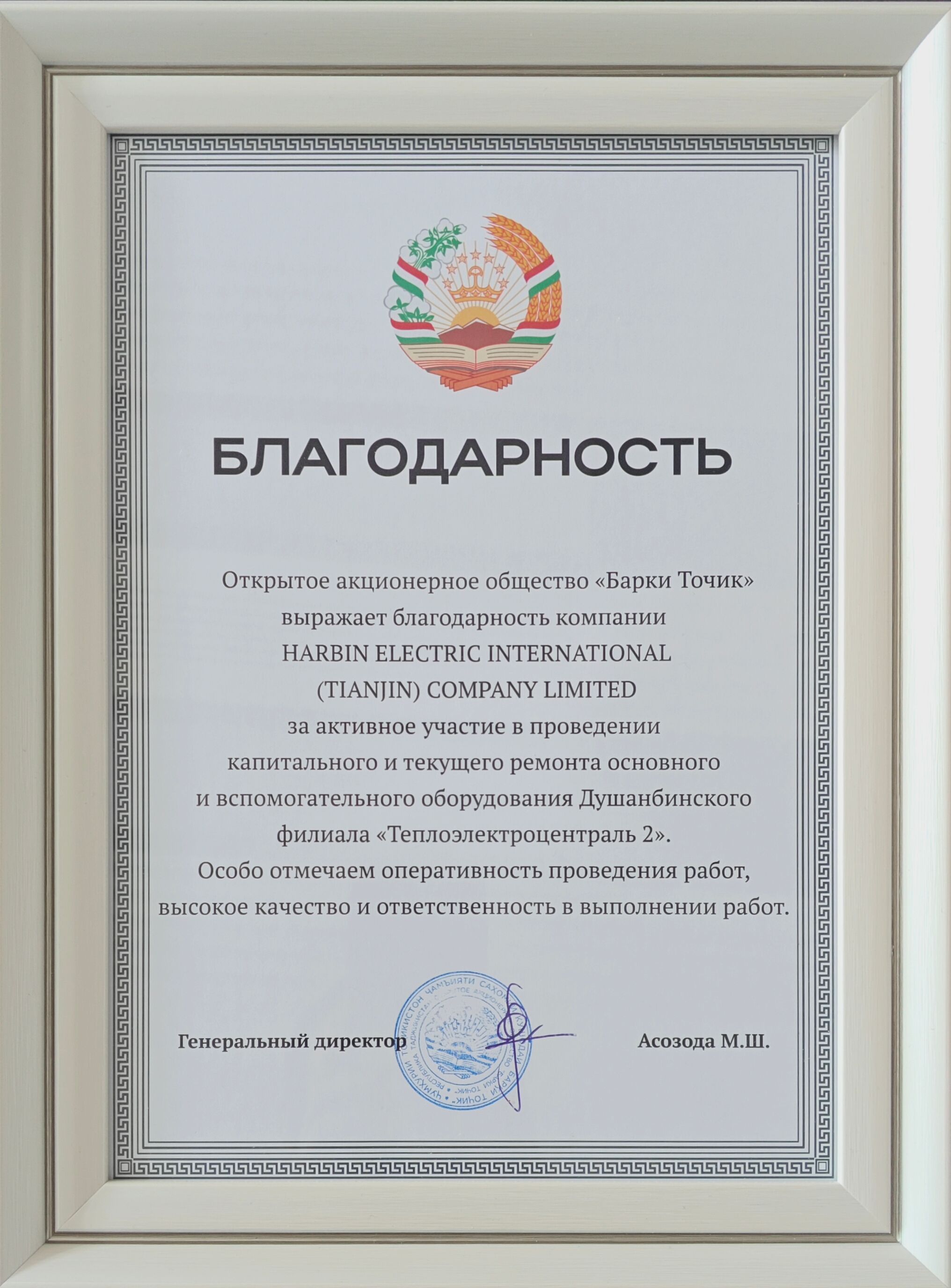 近日,乐天堂fun88集团收到塔吉克斯坦共和国电力公司发来的感谢信,对于乐天堂fun88集团在杜尚别2号电厂检修工作中展现的专业能力与责任担当给予高度评价。 2023年初,初次接触杜尚别2号电厂时,电厂存在系统缺陷遍布,备件库存严重不足且大多因存储不当失效等问题。面对挑战,乐天堂fun88集团运维服务团队优先处置重大缺陷系统,在备件紧缺的条件下确保杜尚别2023年冬季供电供暖的稳定运行,赢得业主信任,为后续合作奠定基础。 2024年3月,4号机组突发黑网事故导致断油烧瓦。乐天堂fun88集团立即组建专业团队赶赴现场。经全面排查确认转子及叶片完好后,重点对受损严重的2号、4号机组实施大修,再次保障了首都地区2024年冬季电力供应。 2025年春节刚过,3号机组出现励磁机着火险情,集电环严重损毁。乐天堂fun88集团立即启动应急机制:技术团队通过现场返回的图像资料远程会诊,并于48小时内完成抢修所需备件清单的编制以及排产工作,检修团队2月14日抵现场后,仅用19天便完成从拆卸返修到成功启机的全流程,以"中国速度"赢得当地政府赞誉。乐天堂fun88集团将继续以专业服务践行使命,让中国技术的温暖之光持续照亮塔吉克斯坦共和国的千家万户。