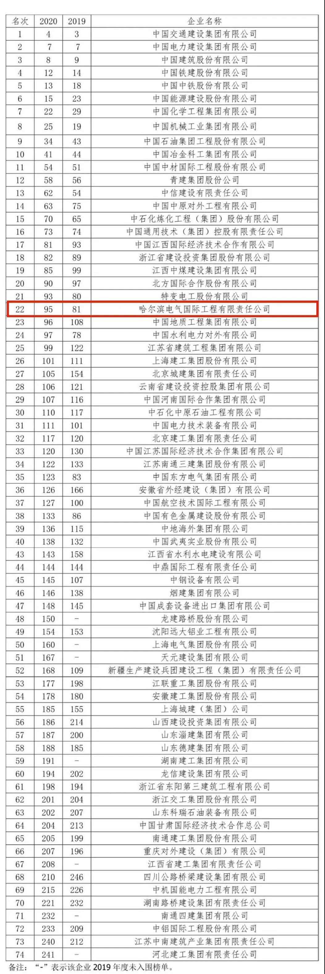 近日,全球工程建设领域最权威的学术杂志——美国《工程新闻记录(ENR)》发布了2020年度ENR“全球最大250家国际承包商”榜单,乐天堂fun88集团第7次入围百强,排名第95位,在上榜的74家中国企业中排名第22位。ENR排名是国际工程建设领域公认的、能够较为全面反映年度国际工程市场发展状况的权威排名,具有极高的权威性和广泛的影响力。“全球最大250家国际承包商”的排名则依据工程总承包企业在本土以外的海外工程业务总收入,重在体现工程总承包企业的国际业务综合实力。上榜的250家企业2019年的国际新签合同总额为6258亿美元,国际营业总额为4730.7亿美元。中国企业在2019年实现国际营业额1200.05亿美元,同比增长0.9%,占250家上榜企业国际营业总额的25.4 %。其中,乐天堂fun88集团2019年营业额75,040万美元,签约额290,530万美元,再次入选ENR“全球最大250家国际承包商”百强榜单。 部分内容来自:中国对外承包工程商会