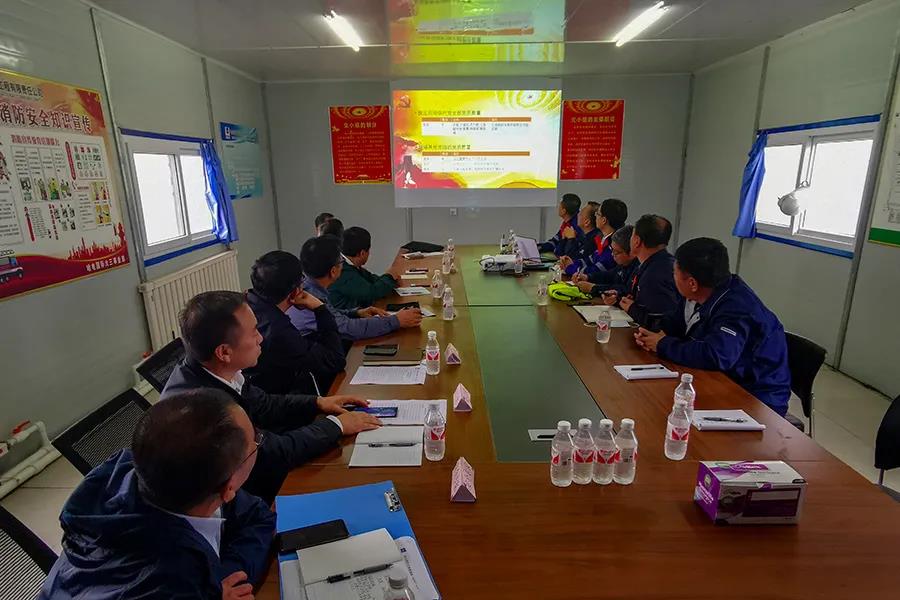 在调研中,吴伟章听取了现场团队对项目执行、党建工作、安全管理以及厂外各系统执行情况的汇报,并到现场考察施工作业情况。
