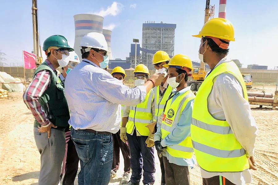对工人进行体温检测