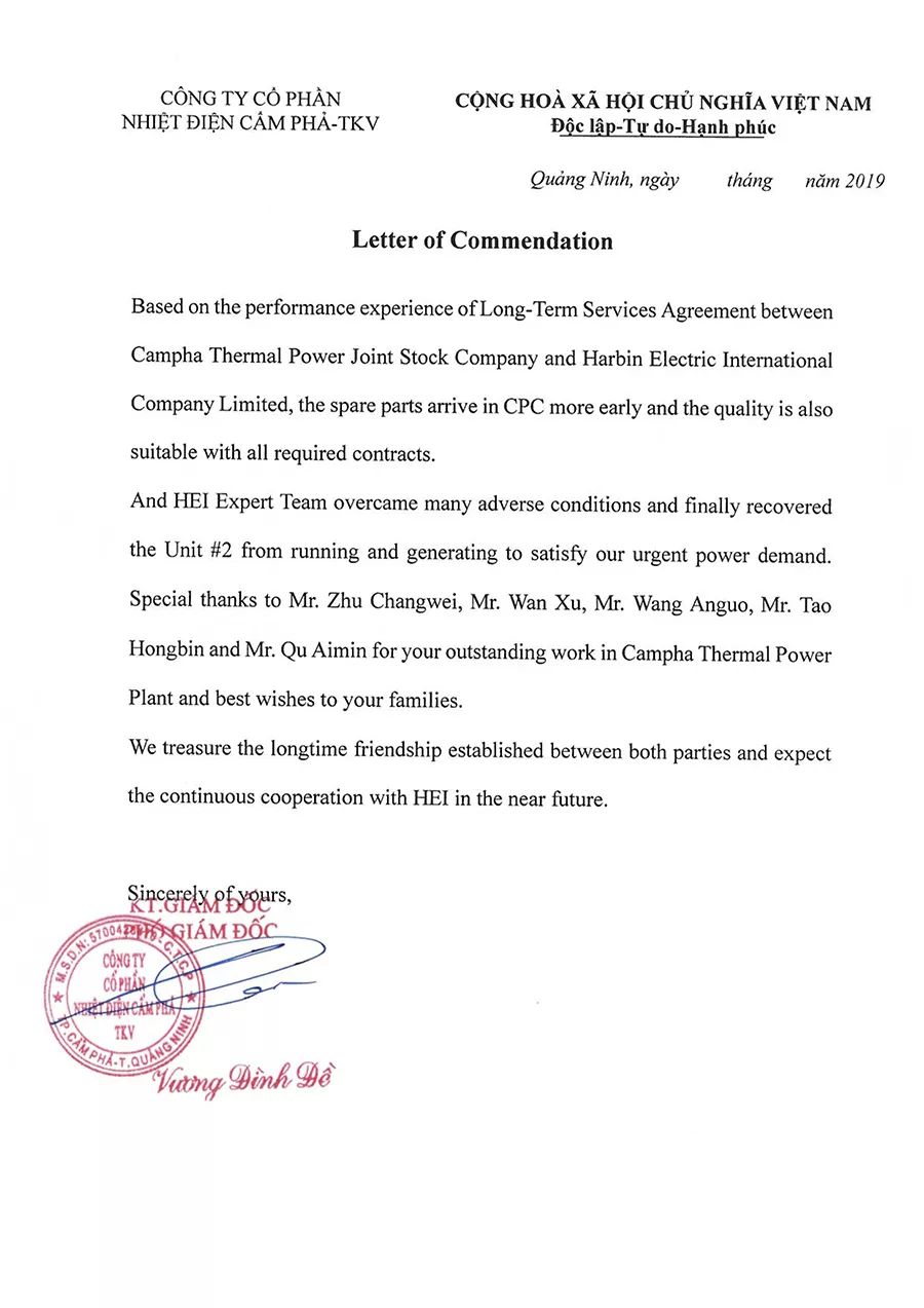 近日,乐天堂fun88集团为越南锦普电厂2号机组提供的大修指导和售后服务工作圆满完成,机组运行稳定,各项参数优良,实现业主预期目标。越南项目业主特发来感谢信,对乐天堂fun88集团快速响应,提供优质、高效、专业的售后服务支持,高质量完成售后服务工作表示感谢,并期待未来开展深度合作。