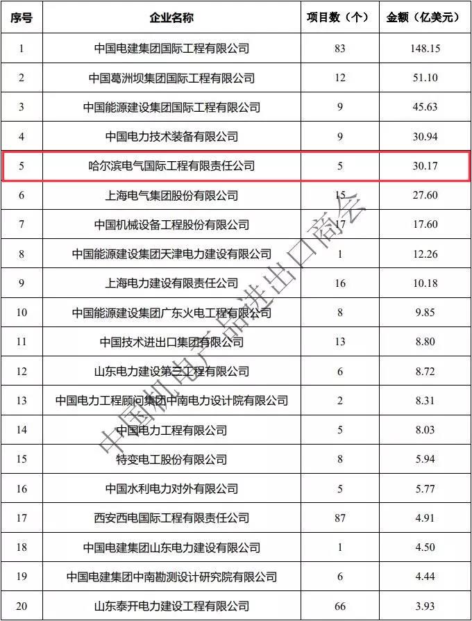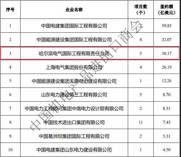2月11日,中国机电产品进出口商会正式发布2019年中国电力行业境外电力项目签约额企业排名,乐天堂fun88集团以新签约项目合同额30.17亿美元位列第5位;同时,入围2019年中国电力行业境外火电项目签约额企业排名(前10位),位列第3位。