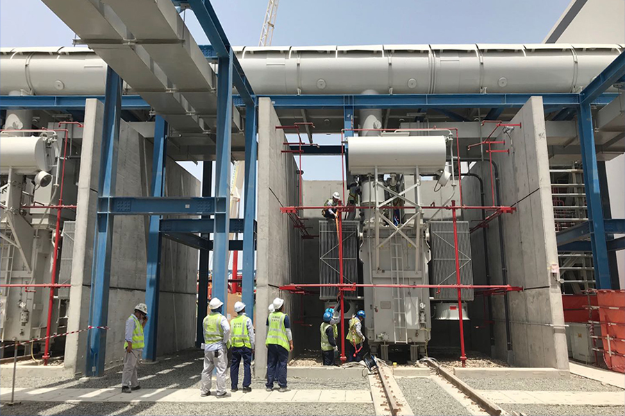 哈斯彦项目执行国际标准,且迪拜当地法律法规对倒送电要求严格。乐天堂fun88集团哈斯彦项目部实施高效管理,各施工分包交叉作业安全有序,面对业主临时增加的要求,主动出击,迎难而上,使变压器区域和400kV线路区域于5月30日顺利通过DEWA、ACWA送电前的各项检查,具备倒送电条件。为保证受电顺利,现场电控团队组织大调、小调及各分包单位协同跟进,严格的分工,确保操作的合规性以及现场的安全管理,做到受电期间井然有序。