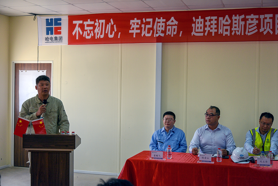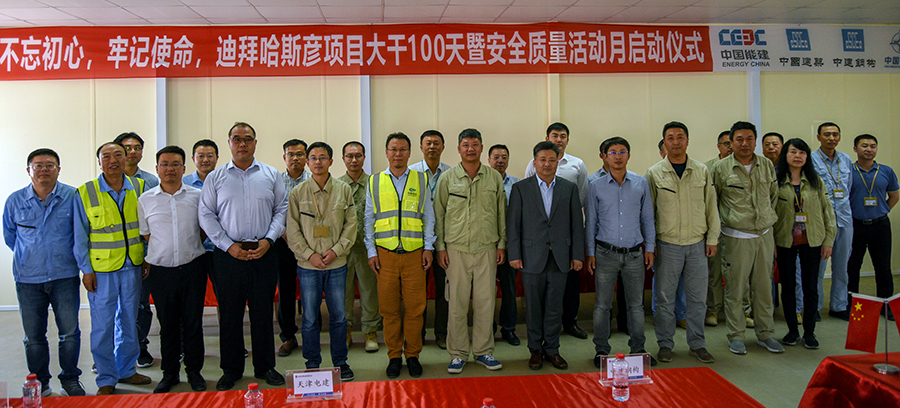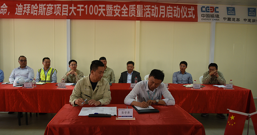 乐天堂fun88集团“不忘初心、牢记使命”主题教育启动后,各部门高度重视,迅速行动,坚持“把开展主题教育与当前中心工作相结合”, 认真落实“守初心、担使命、找差距、抓落实”总要求,确保主题教育落地落实。 6月20日,迪拜哈斯彦项目部结合保项目发电目标完成,举行“大干100天暨安全质量活动月”启动仪式,签署节点计划完成责任状。乐天堂fun88集团副总经理李超,以及中建三局二公司、中交二航院、天津电建、中建钢构等各主要分包单位领导出席仪式。