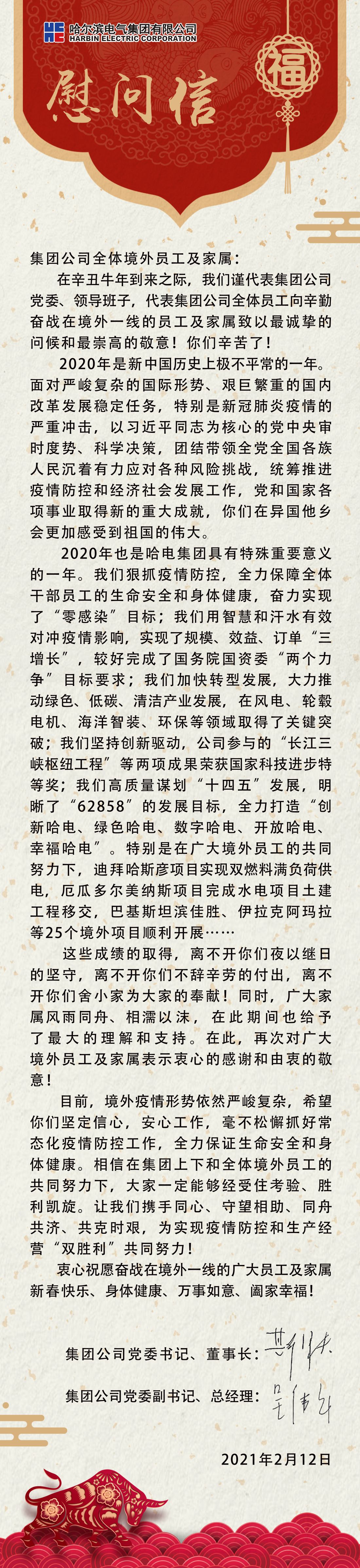 致集团公司境外员工及家属的慰问信