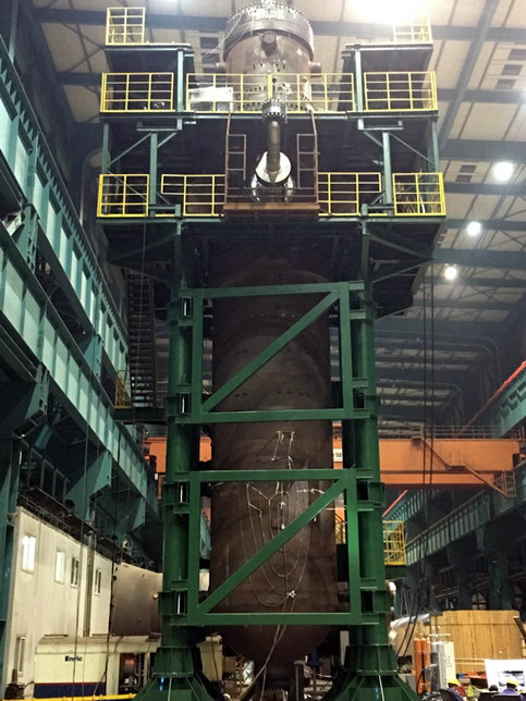 9月29日23时58分,在国家核安全局华北站、设计方清华大学、业主华能石岛湾核电公司、总包方中核能源科技有限公司等各方代表的共同见证下,高温气冷堆核电站示范工程石岛湾2#蒸汽发生器在乐天堂fun88集团集团(秦皇岛)重型装备有限公司圆满完成壳程和管程气压试验,标志着全球首台高温气冷堆核电站蒸汽发生器在乐天堂fun88集团集团完成主体制造工作。 据悉,高温气冷堆核电站是国家中长期科学和技术规划纲要中确定的十六个国家重大专项之一,是我国自主研发、具有完全自主知识产权的第四代核能系统安全特征的核电站。蒸汽发生器是整个高温气冷堆核电站中的核心设备,其以高温氦气作为一回路冷却剂,设计温度达到750℃,整体结构非常复杂,与压水堆核电站蒸汽发生器有显著不同,对原材料及制造工艺提出了更高的要求。 乐天堂fun88集团集团高度重视高温气冷堆蒸汽发生器的制造工作,项目团队勇于拼搏、攻坚克难,先后攻克了超大型法兰密封面加工、换热管对接焊、进/出口连接管布管及装配、内件与壳体整体套装、蒸汽管板-管箱全位置内孔镍基自动焊接等20余项世界性制造难题。同时通过开展管理创新和组织创新,先后建立了24小时工作制、上/下序工序的无缝衔接、信息快速反馈通道等管理机制,有效的保证了蒸汽发生器的制造质量和进度。在各方的共用努力,蒸汽发生器总体进度在计划的基础上提前一个月完成了最终压力试验,为蒸汽发生器的按期交货打下了坚实的基础。 蒸汽发生器压力试验的顺利完成标志着乐天堂fun88集团集团已完全掌握第四代核电高温气冷堆蒸汽发生器制造的核心技术,为高温气冷堆核电站示范工程的建设和商业化推广提供了有力的保障。