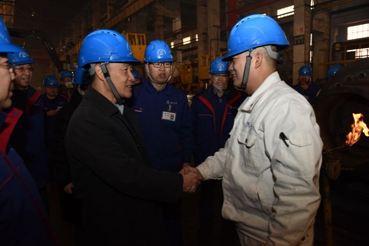 斯泽夫在锅炉公司轻容分厂走访慰问,与中央企业劳模昝滨亲切交谈