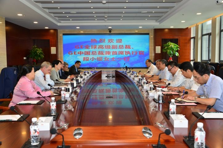 参加会见的还有公司副总经理苗立杰、吴伟章,总经理助理曲哲及有关部门负责人,GE全球副总裁 Joe Mastrangelo,