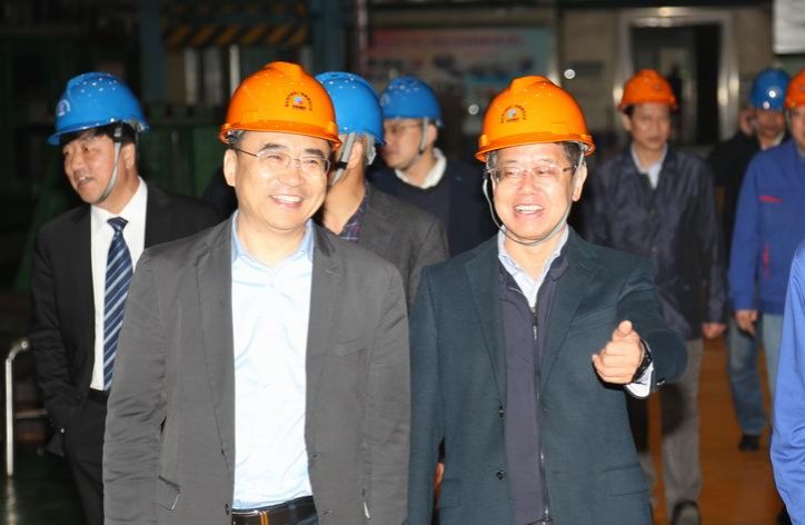 乐天堂fun88集团集团党委书记、董事长邹磊陪同中国一重党委书记、董事长刘明忠(右)参观汽轮机公司