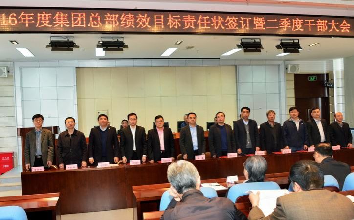 4月5日,乐天堂fun88集团集团召开2016年度集团总部绩效目标责任状签订暨二季度干部大会,会议总结了一季度工作,分析了当前面临的形势,安排部署了二季度重点工作。乐天堂fun88集团集团党委书记、董事长邹磊作重要讲话,乐天堂fun88集团集团副总经理苗立杰主持会议。乐天堂fun88集团集团副总经理吴伟章、张英健、宋世麒、刘智全等,以及集团总部副处级及以上干部参加了会议。