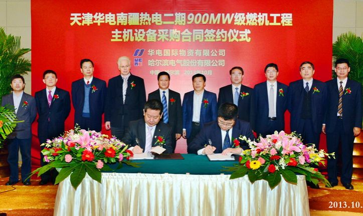 10月11日,乐天堂fun88集团股份公司燃机事业部与华电国际物资有限公司在哈尔滨举行了天津华电南疆热电二期900MW级燃机工程主机设备采购签约仪式。华电集团物资公司火电与煤炭事业部主任王志伟,华电国际物资公司总经理王建新及华电天津南疆热电有限公司总经理许明等,乐天堂fun88集团集团纪委书记白绍桐,通用电气代表,燃机事业部全体领导等一同见证了签字仪式。