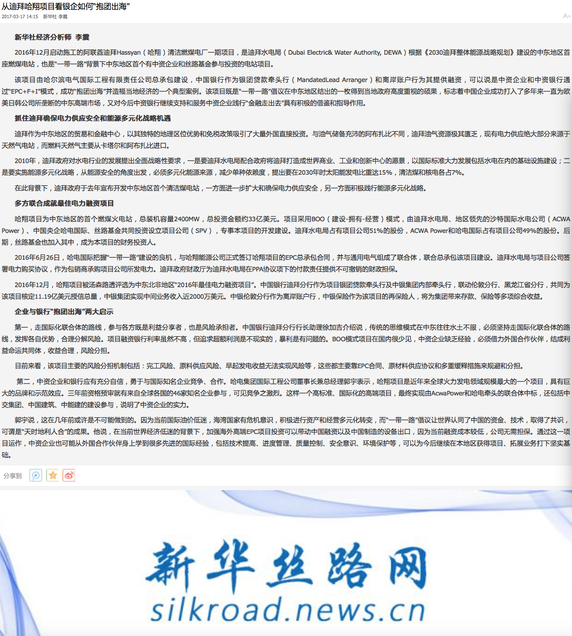 【新华社新华丝路网】从迪拜哈翔项目看银企如何“抱团出海”