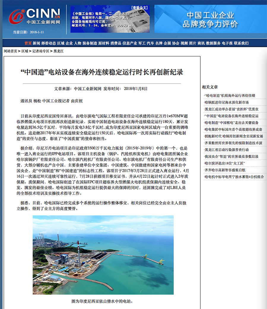 日前从印度尼西亚国传回喜讯,由乐天堂fun88集团承建的印尼万丹1×670MW超临界燃煤火电项目机组再次创造新纪录,实现中国制造电站设备在海外连续稳定运行180天,累计发电量达到36.5亿千瓦时,平均每月发电3.8亿千瓦时, 成为印度尼西亚国家电网区域内一台重要的调峰机组。这是继2017年年末实现连续安全稳定运行150天后,乐天堂fun88集团再一次用实际行动践行“乐天堂fun88集团制造”的责任与态度,彰显了“中国质量”的使命和担当。 据介绍,印尼万丹电站项目是印尼政府3500万千瓦电力规划(2015年-2019年)中的第一个,也是唯一进入商业运行的IPP电站项目。该项目主机设备(锅炉、汽轮机和发电机)由乐天堂fun88集团集团所属企业哈尔滨锅炉厂有限责任公司、哈尔滨汽轮机厂有限责任公司、哈尔滨电机厂有限责任公司生产和供货,大部分辅机也产自中国,主要参建单位中交集团、中国建筑、中国能建和国家电网等都来自中国央企,是“中国制造”和“中国建造”的标志性工程。该项目于2017年3月28日正式进入商业运行,4月16日一次通过30天连续可靠性运行,7月28日获颁项目移交证书,并从4月22日起计时正式进入2年质保期。质保期间,乐天堂fun88集团创造了在国际EPC项目超临界大型燃煤火电机组质保期内连续安全、稳发、满发的最佳业绩。乐天堂fun88集团为机组稳定运行提供最大的保障的同时,还圆满完成了对LBE人员的全部技术培训及实操技术指导工作。 据悉,目前,乐天堂fun88集团已经完成多个系统的运行操作整体移交,相关岗位已经完全由业主人员独立操作,得到了业主方的高度赞誉。 |
