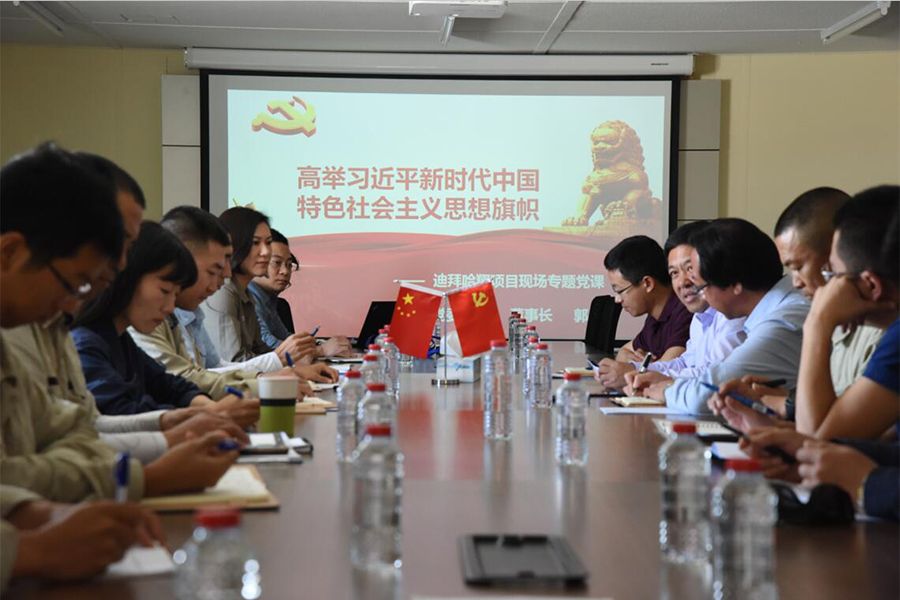为传达贯彻党的十九大精神,乐天堂fun88集团党委书记、董事长郭宇在参加迪拜哈翔项目现场月度高层会议期间,于2017年10月25日围绕“高举习近平新时代中国特色社会主义思想旗帜,不忘初心,牢记使命,”为迪拜哈翔项目现场全体党员干部讲了专题党课。 郭宇在党课中结合党的十九大胜利召开以来对十九大报告学习的心得体会,认真分析讲解了十九大报告的主要内容,重点阐述了新时代、新使命、新思想、新征程的深刻内涵,并与现场党员举行深入座谈,同时对学习宣传贯彻党的十九大会议精神提出了意见和要求。