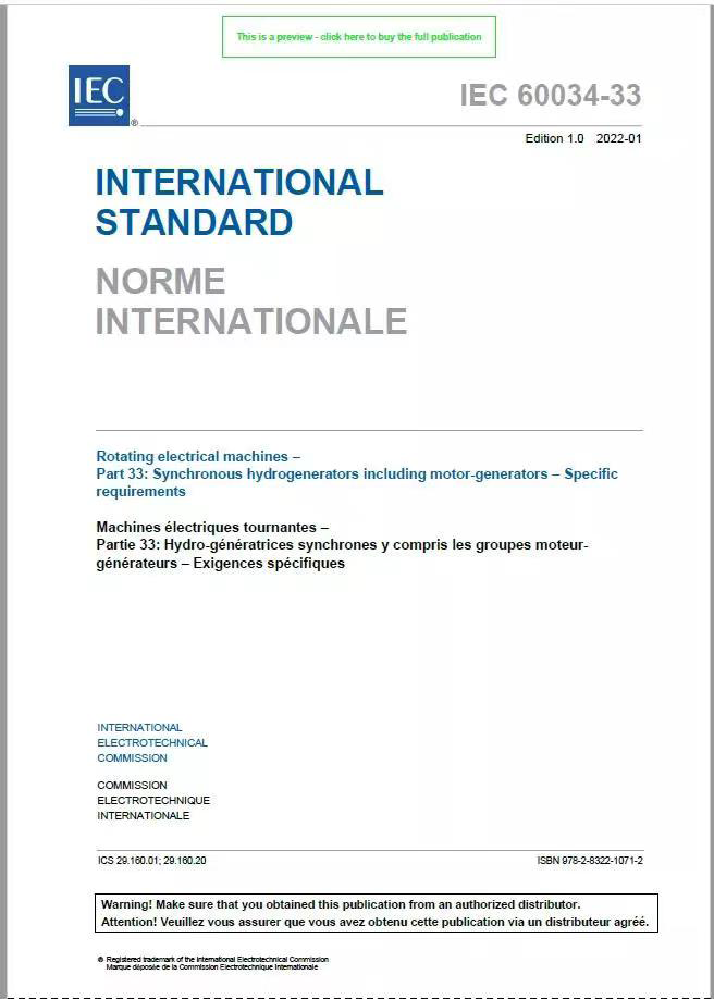 2022 年1 月, 由乐天堂fun88集团集团技术人员牵头制定的国际标准IEC60034-33"同步水轮发电机(发电电动机)基本技术要求"正式发布实施。这是我国旋转电机领域首次主导制定的国际标准,也是我国国际标准化工作的又一个重大突破。