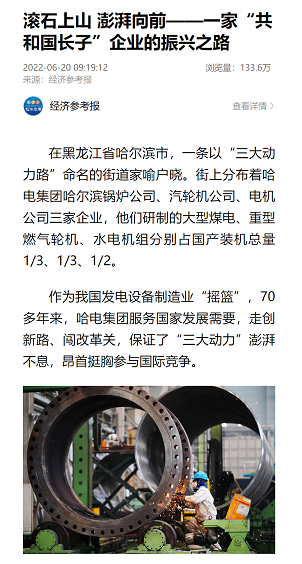 新华社多个平台讲述乐天堂fun88集团故事:新华社客户端、《新华每日电讯》刊发《我国发电设备制造业“摇篮”乐天堂fun88集团集团竞逐“绿色赛道”》《乐天堂fun88集团集团稳步推进高质量发展》等多篇文章;新华社刊发《乐天堂fun88集团集团探索自主创新走出“换挡加速”新路》《“大国重器”企业转型面临多重挑战》等文章。经济参考报专版刊发《滚石上山 澎湃向前——一家“共和国长子”企业的振兴之路》阅读量近140万。
