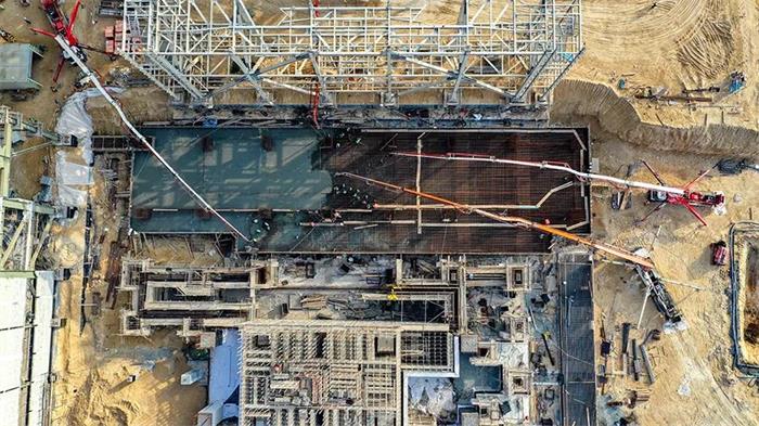 Por su parte, el 26 de junio a las 15:30, hora local, se completó sin contratiempos y tras 19 horas de trabajo continuado el vertido de las losas de cimentación de las columnas C y D de la planta principal n.º 3, con un total de 2850 metros cúbicos de hormigón vertidos. Con la consecución sin contratiempos de esta tarea se logra establecer una sólida base para el posterior trabajo de izado y montaje de las estructura de acero que irá en la planta principal n.º 3 del proyecto de Hassyan.