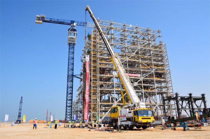 El director del proyecto de HEI Xu Hongfu dio la orden de izado de la estructura de acero, con lo que se iniciaron oficialmente las obras de instalación de dicha estructura en la central eléctrica de carbón limpia de 4x600MW de Hassyan (Dubái) comisionada a HEI.